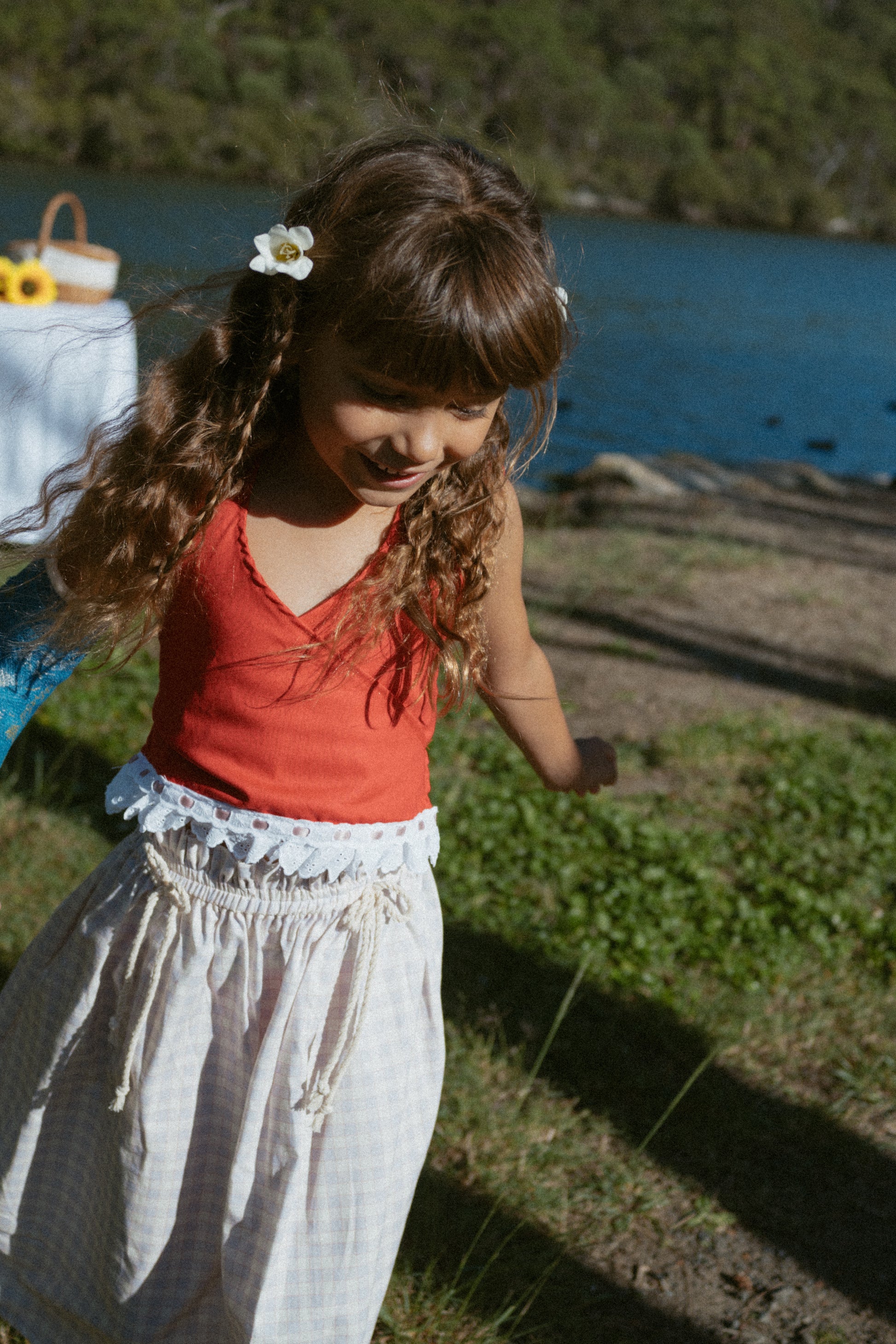 - We like this one teamed with our Lavender Gingham skirt or our Pink Petals mini skirt