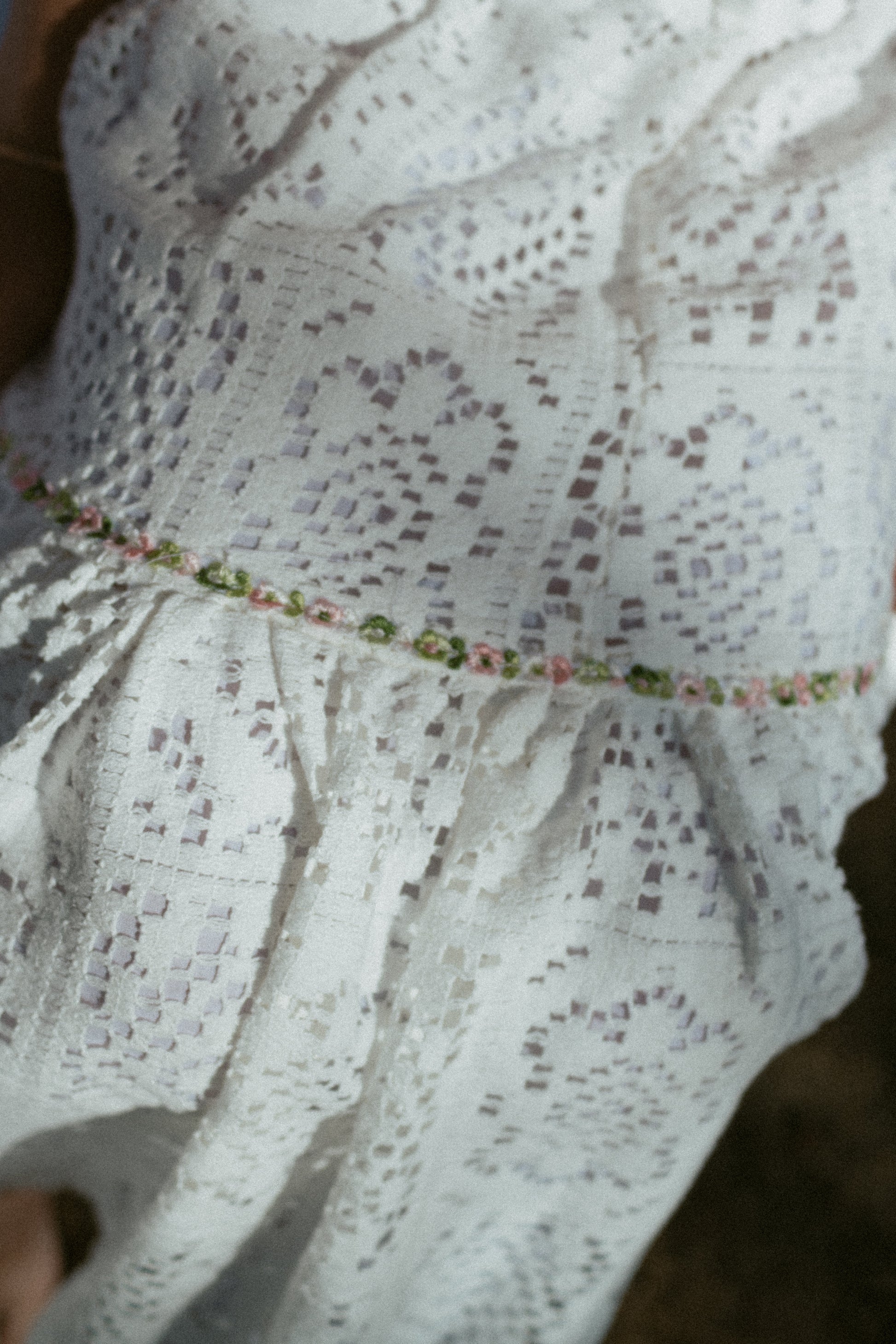 - Trimmed with pink and green embroidery trim