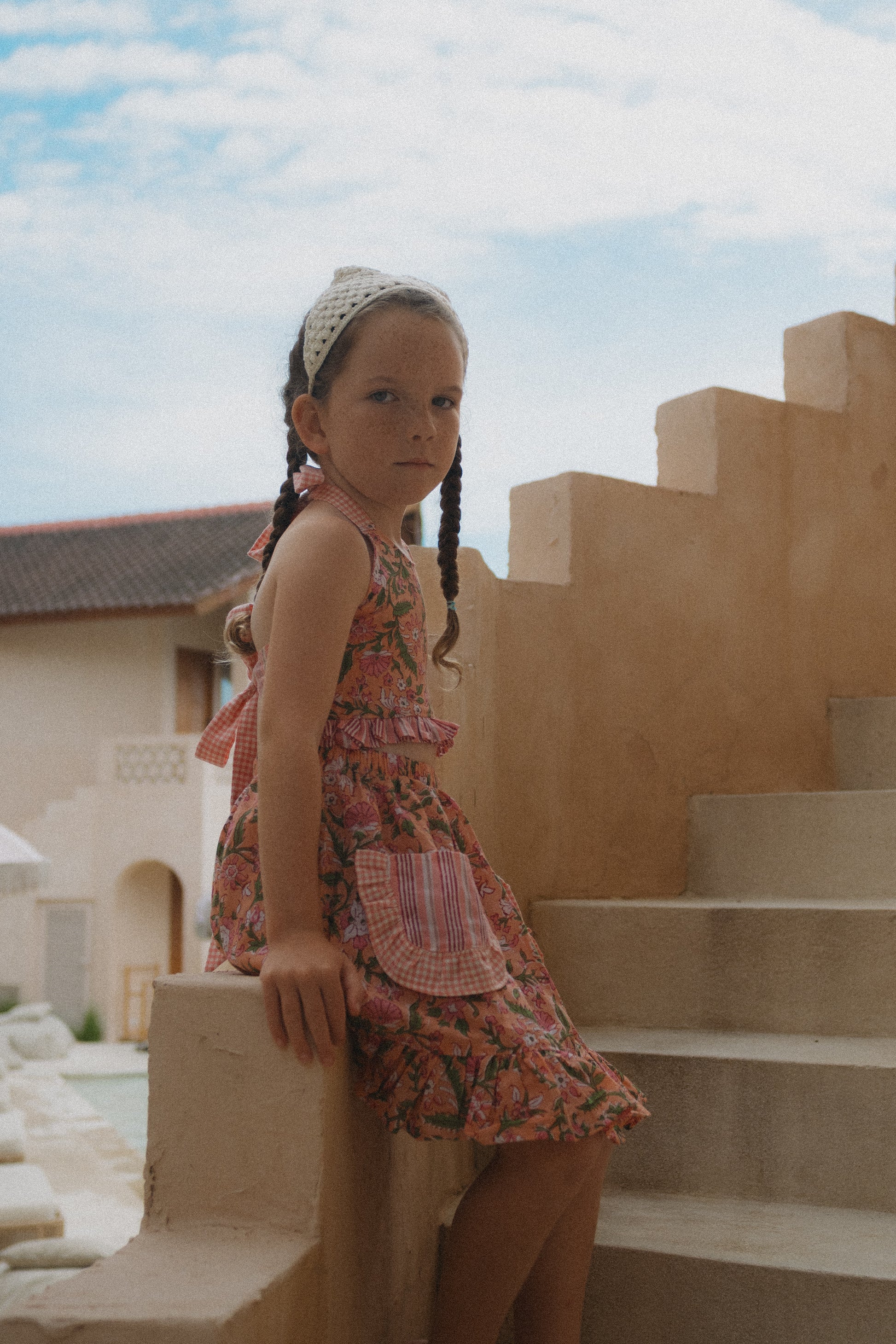 - Oversized pockets to front of skirt in striped fabric and mini gingham frill